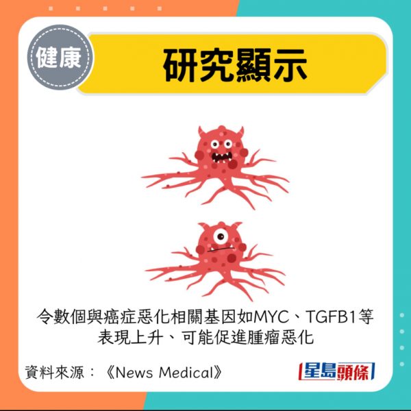 - 令数个与癌症恶化相关基因如MYC、TGFB1等表现上升