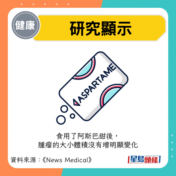 阿斯巴甜自1960年代开始被广泛使用,被视为糖的代替品,常见于低糖汽水、香口胶、部分药物及咀嚼型维他命等产品。过往多项研究都指出,其摄入可能增加多类癌症风险,包括肠癌、脑瘤、生殖系统癌及血癌等,亦与头痛有关。国际癌症研究机构(IARC)与联合国粮农组织/世界卫生组织食品添加剂专家委员会(JECFA)早前已将阿斯巴甜列为“可能致癌物”,并建议: