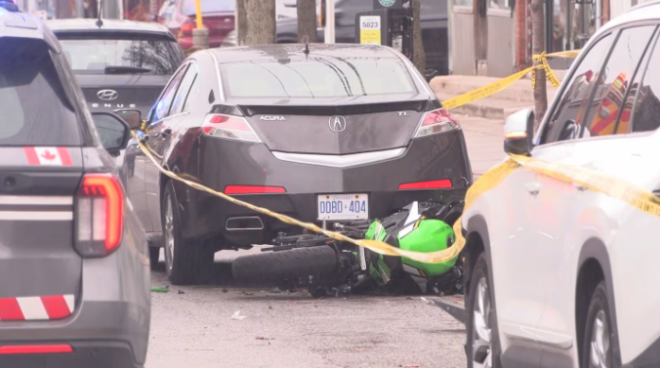 周日下午,一名摩托车骑手在士嘉堡发生的碰撞中身亡,多伦多警方正在调查这起事故。