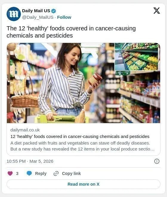 众所周知,水果和蔬菜是健康饮食的核心,有助于预防癌症等多种重大疾病。但美国消费者权益组织 环境工作组(EWG) 最新研究却提醒,一些看似健康的水果蔬菜可能潜藏致癌化学物质。