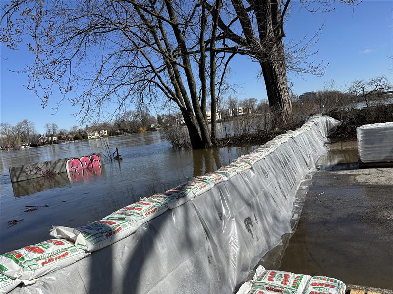 渥太华河Carillon一带周五(17日)早上流量约为每秒6,100立方米,预测4月18日可能升至约7,050立方米的高峰。Des Prairies河流量亦维持高位,约每秒2,400立方米并持续上升。