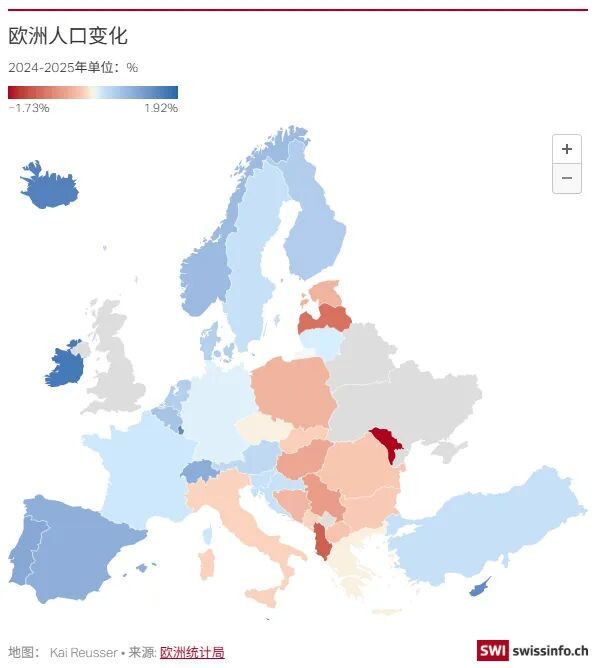 不过,欧盟并非铁板一块。一些国家因内部迁移或税收政策仍能维持人口增长,但也承受着住房和公共服务的压力;而东欧、巴尔干及南欧部分地区,则正经历着快速的人口流失,部分区域正在沦为“人口荒漠”。