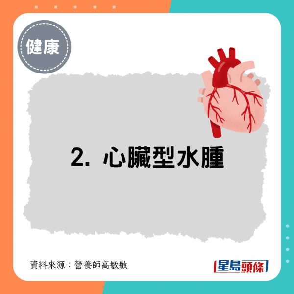 - 注意事项:“心脏型水肿”建议控制水分总摄取量。