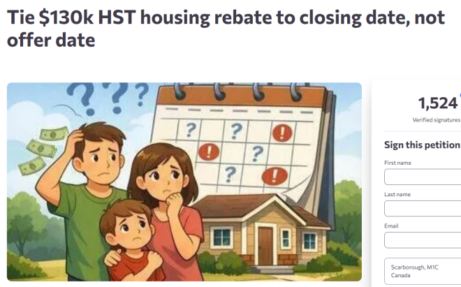 如果您希望为 2026 年初签约买家争取追溯修正,请参考另一个相关请愿链接:修订安省 HST 退税资格期限的请愿。