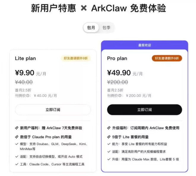 ArkClaw无需任何复杂配置,打开网页即可使用,7×24小时在线。当前,”火山方舟Coding Plan”用户可抢先体验,”Coding Plan Pro”用户登录即可同步使用,”Coding Plan Lite”用户可免费体验7天。