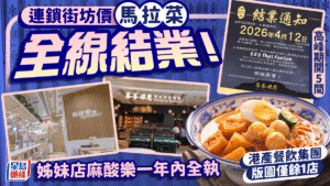 連鎖街坊價馬拉菜「峇峇娘惹」全線結業!高峰期擁5舖 港產餐飲集團姊妹店麻酸樂去年全執 星島頭條 2026-04-15 No Comments 連鎖街坊價馬拉菜「峇峇娘惹」全線結業!高 Read More »