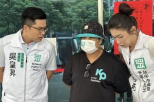 民眾黨台中市議員參選人劉芩妤(右)今上午
