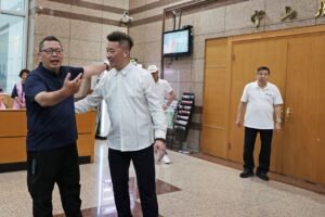 蔣萬安昨天上午主持市政會議前,媒體堵問蔣