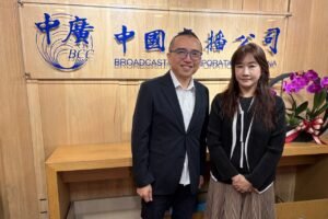 民眾黨秘書長周榆修(左)今天接受廣播節目