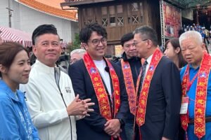 圖為立委沈伯洋(左3)日前參加松山慈惠堂