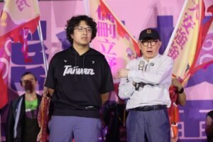 聯電創辦人曹興誠(右)指民進黨立委沈伯洋