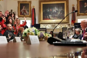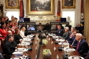 美国总统特朗普在与乌克兰总统泽连斯基会谈