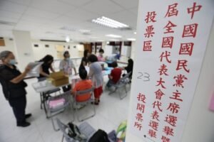 國民黨主席選舉投票登場,民眾在投票所排隊