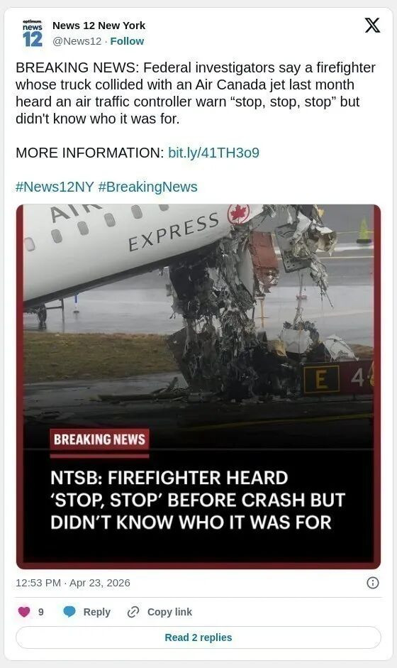 网上可获取的无线电警告捕捉到了空中交通管制员至少 10 次说“停止”,并紧急告知消防车不要穿过跑道。