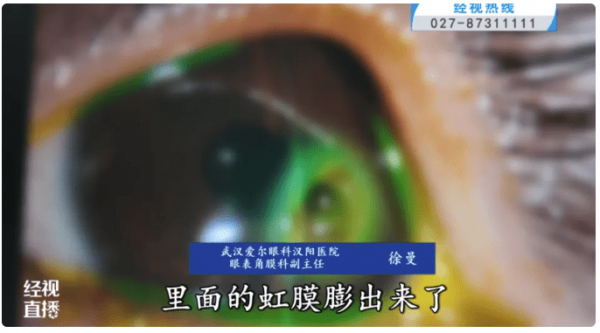 武汉爱尔眼科汉阳医院时眼表角膜科副主任医生徐曼为小星检查后发现,她的眼睑边缘严重充血,左眼角膜下方更出现了一个约2mm的穿孔,眼内的虹膜组织明显突出并卡住在破洞处,画面怵目惊心。因为情况极为严重,必须进行角膜移植手术才能保住视力,右眼也没有幸免于难,需要进行针对性治疗。