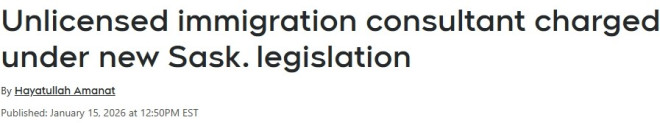 1月15日,萨省移民与职业培训厅通报,已对一名省内居民提控,指其在未持有执照的情况下提供移民或招聘服务。
