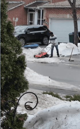 一段视频显示,一名在Brampton的男子用割草机清理自家车道上的积雪,这段视频在加拿大社交媒体上迅速走红。有人调侃称,这可能不是“最聪明的办法”。