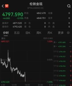 15日,现货黄金冲高回落,盘中一度冲